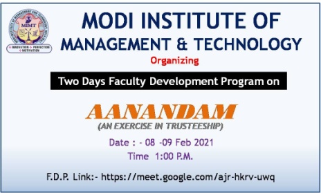 2-Days Online Faculty Development Program “Aanandam – An Exercise Trusteeship