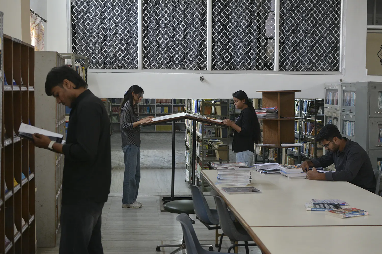 In this era of Information explosion, the libraries fulfill the thirst of many information seekers. Better library facilities enables the users to make feel of qualitative and quantitative transformation of knowledge, as the readers the high confidence level seen in the students after consultation in the library reveal greater importance of this rare facility. Our institution encourages all students and staff members to make the best use of the library that has been carefully built up since the inception of the college. The library is housed in a spacious area of 400 sq.m., with Reference Section, Magazine Section, Book Bank and Digital Library.